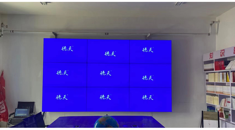 新疆圖木舒克五十一團(tuán)會議室采購的是德天55寸液晶拼接屏,總共18臺,按照3*3方式安裝,于近日安裝調(diào)試交付使用,非常感謝客戶信任與支持!